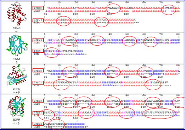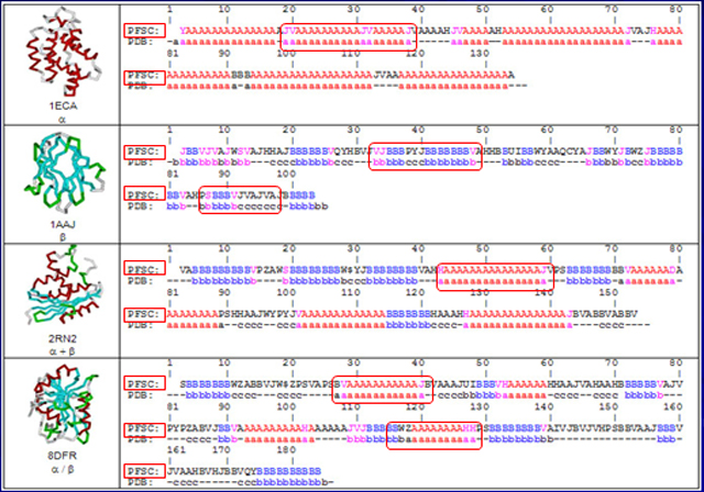 Few of samples are displayed in table below which shows the PFSC description and compares with assignment of secondary structure fragment from authors by PDB and other methods.