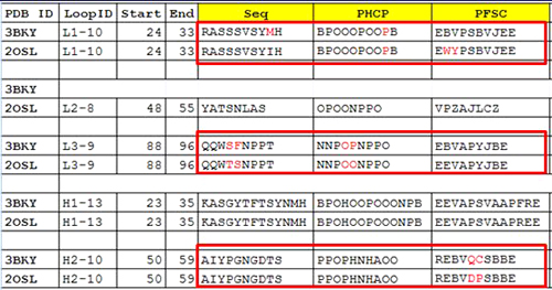 - Fingerprint comparison for CDR loops of monoclonal antibody (Rituximab) is show below table.